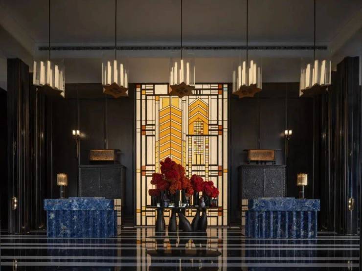 其次,项目标良多细节都融入了海派典范元素,好比落客区美轮美奂的约300㎡彩色玻璃穹顶,艺术连廊拱形廊道灵感都来自和平饭馆。