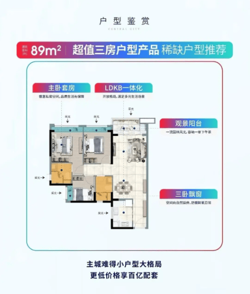 若是说八十五平方米户型是刚需的入门券,那么八十九平方米三房两卫户型则是年轻夫妻逃求质量糊口的进阶之选。这款户型正在空间操纵上更胜一筹,出格是正在功能分区的合上达到了新的高度。从卧套房设想,带卫生间和飘窗,为仆人供给了私密、舒服的歇息空间。晚上醒来,阳光透过飘窗洒正在床上,夸姣的一天;夜晚洗澡后,正在的卫浴空间放松身心,洗去一天的怠倦。次卧和书房结构合理,互不干扰,满脚了家庭各自的糊口需求。